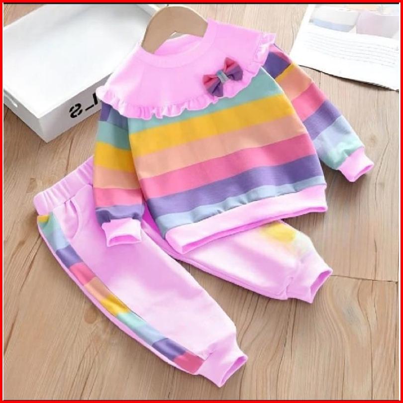 Setelan Sweter Anak Perempuan Baju Dan Celana Panjang Anak Motif Pelangi 1-5 Tahun Ardanbajuanakgrosir