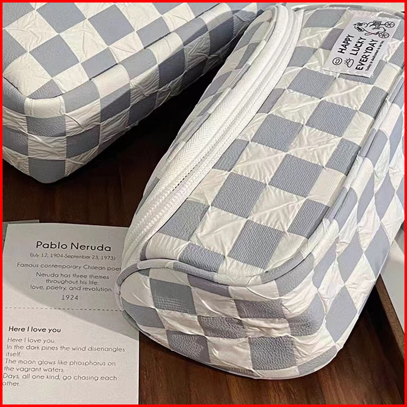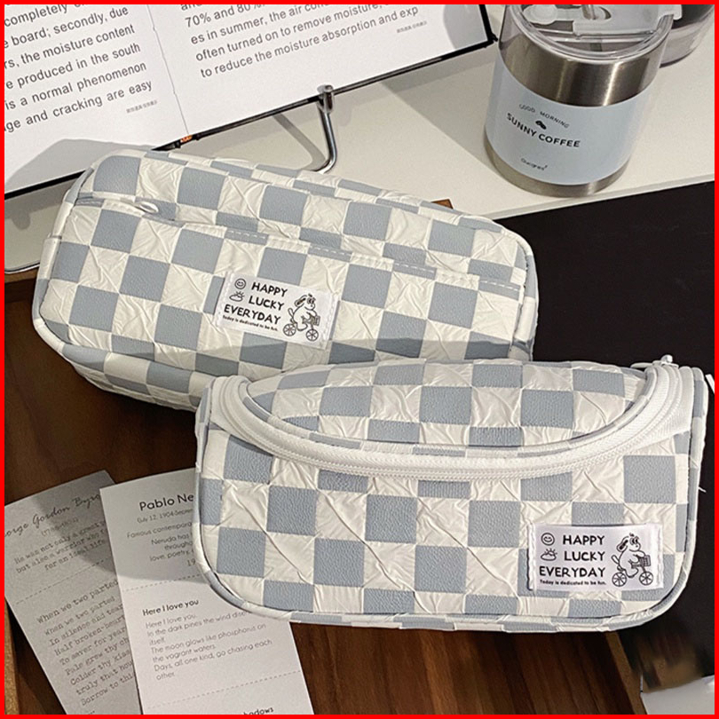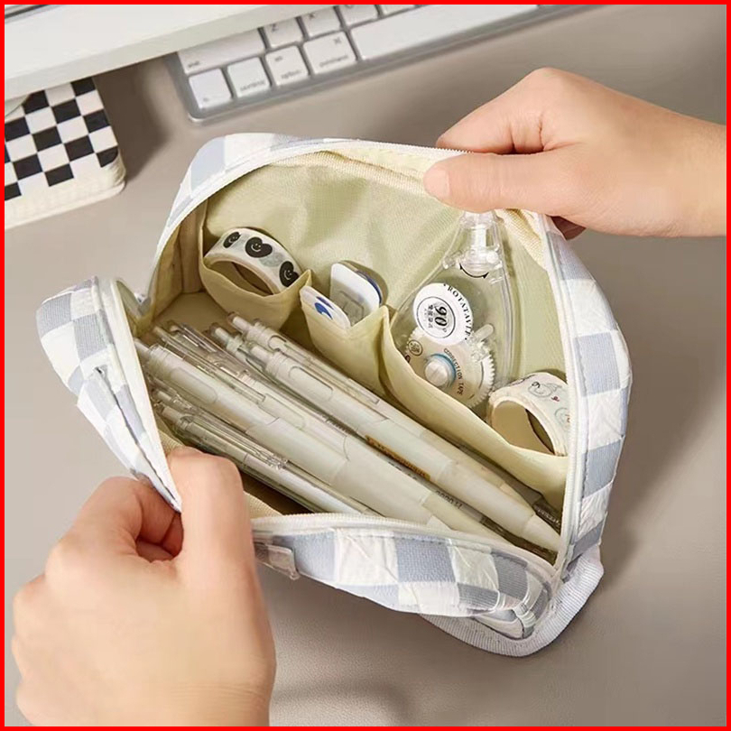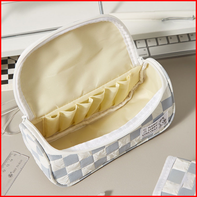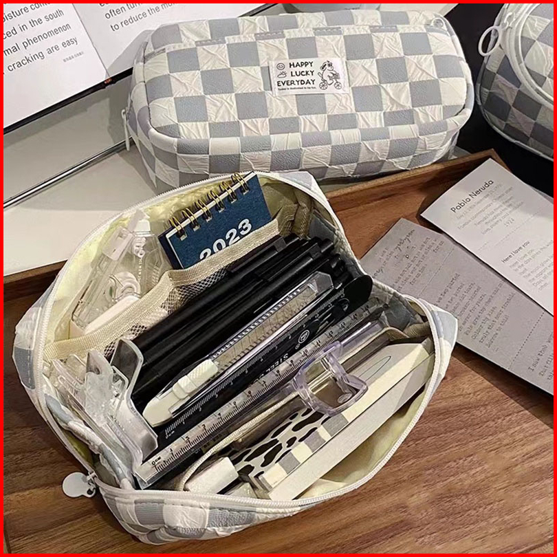 Tempat Pensil Kotak-kotak Krim Kapasitas Besar