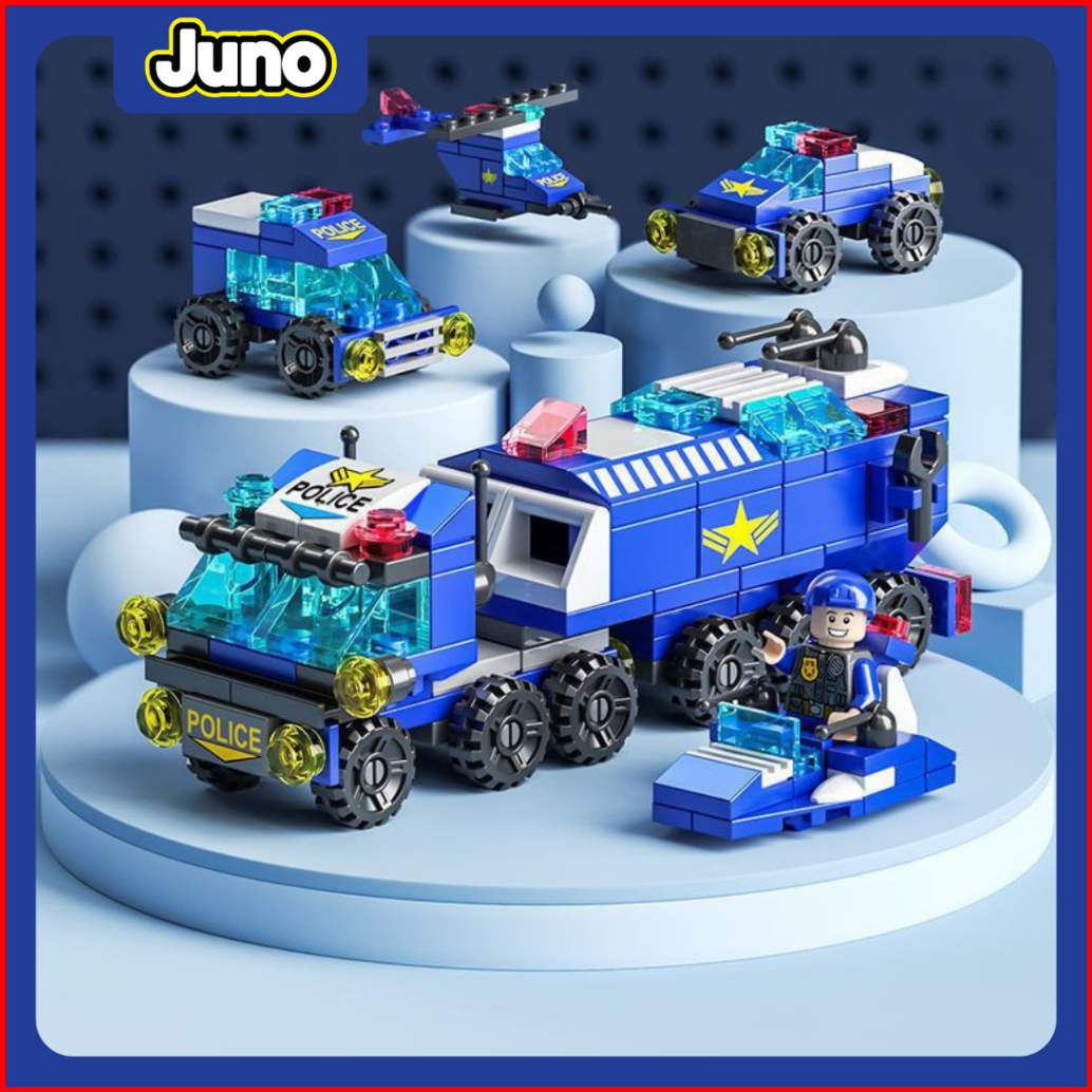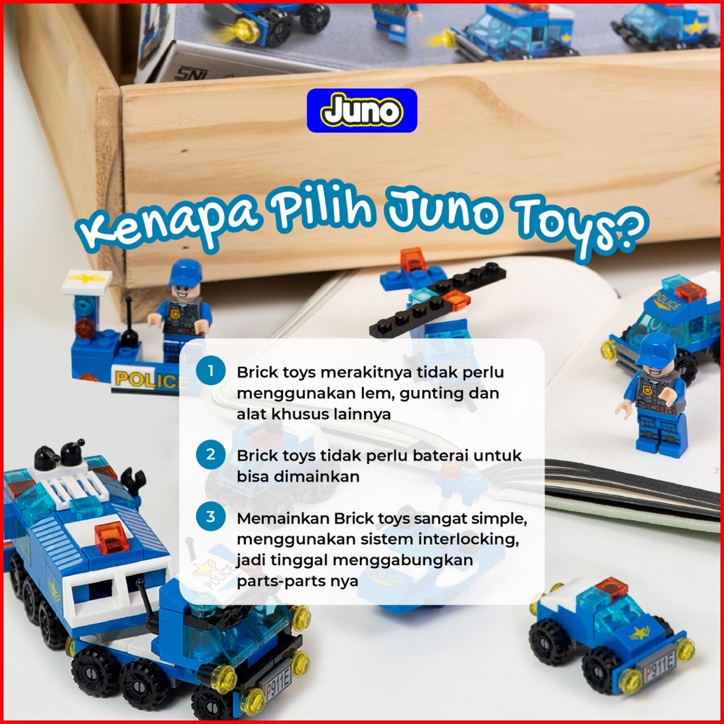 Juno Mainan Bricks Balok Juno 8612-6a Police Car 6in1 Mainan Balok Mobil 6in1
