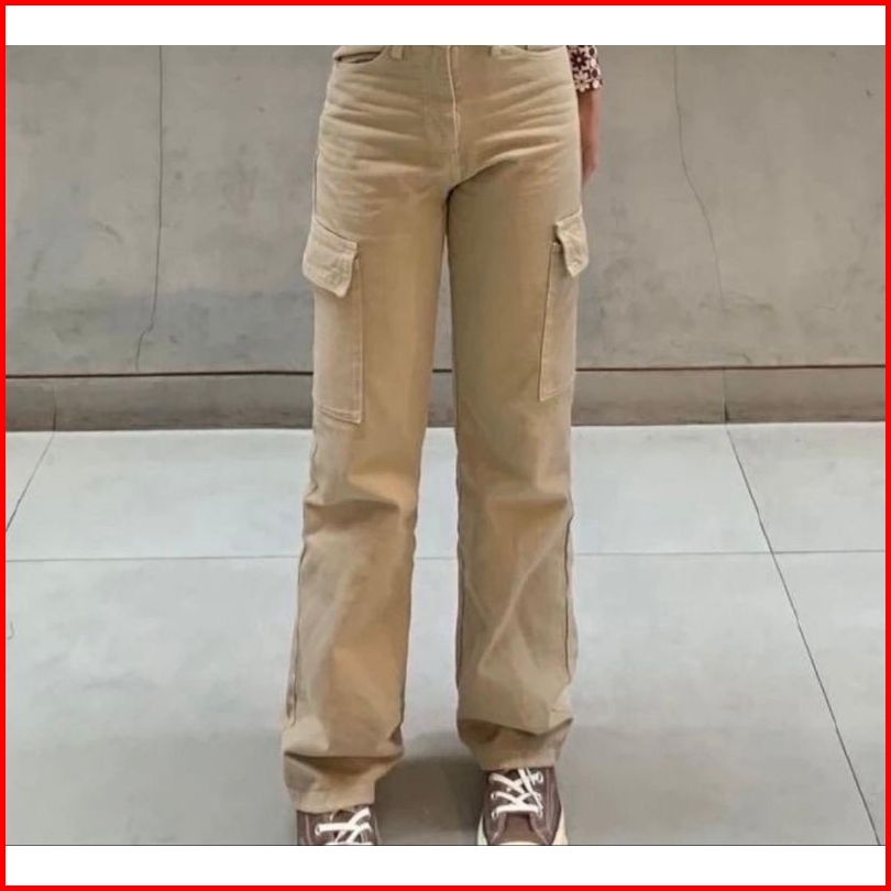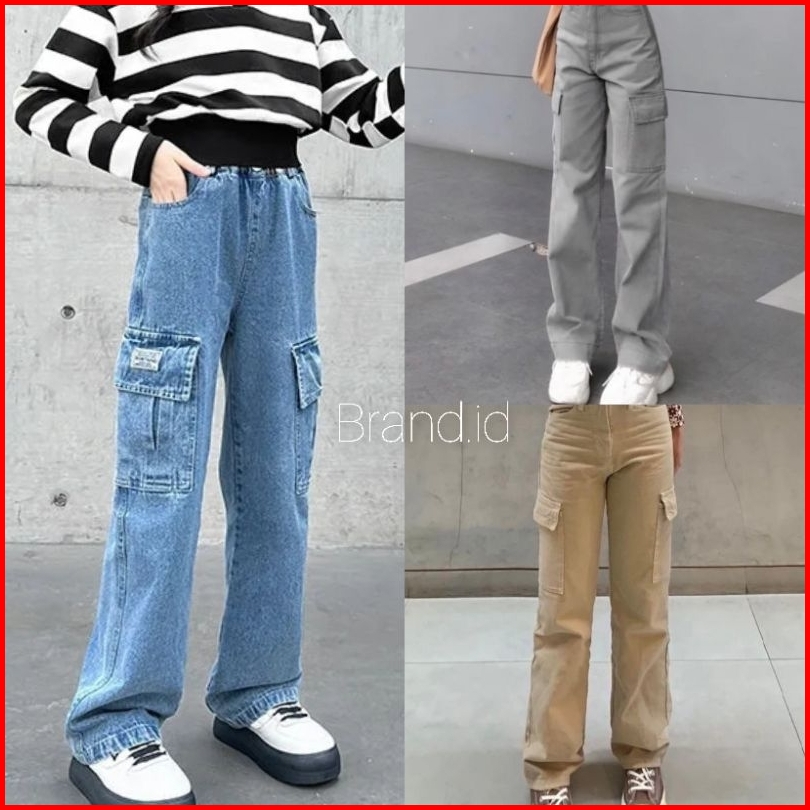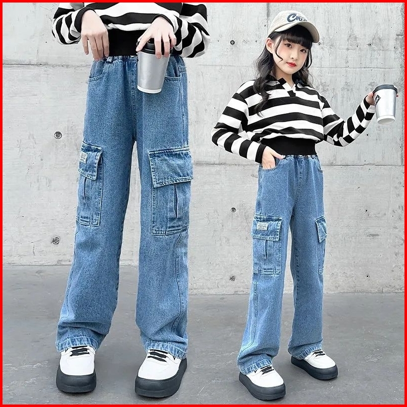 Celana Highwaist Jeans Cargo Anak Perempuan 7-12 Tahun Snow Blue