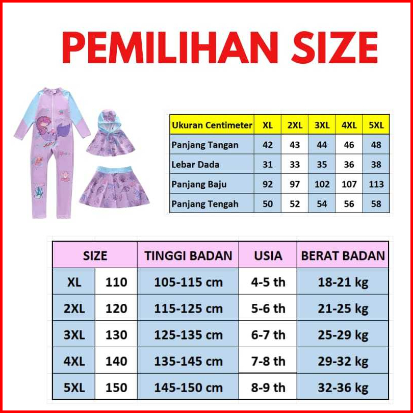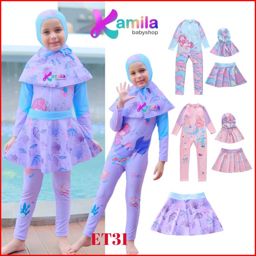 Et31 Baju Renang Anak Perempuan Muslimah Size Xl-5xl Baju Diving Anak Hijab Model Swimsuit