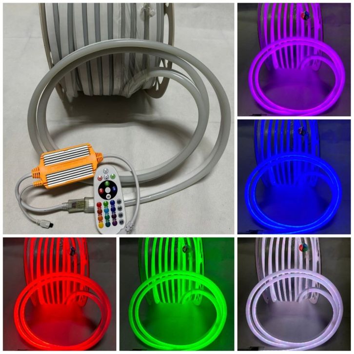 NEON FLEX LED SELANG RGB FUL COLOR 16 WARNA 220V KOMPLIT REMOT 10 MTR