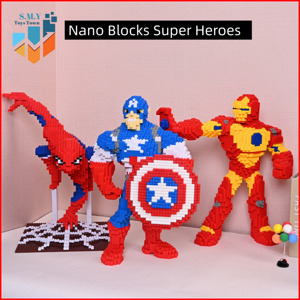 Smy Nano Blocks Super Heroes 3d Model Jumbo Mainan Blok Susun Bricks Konstruksi Diy Spiderman Iron Man Captain America A