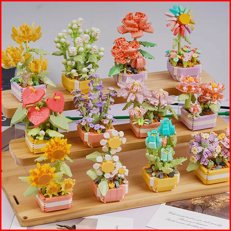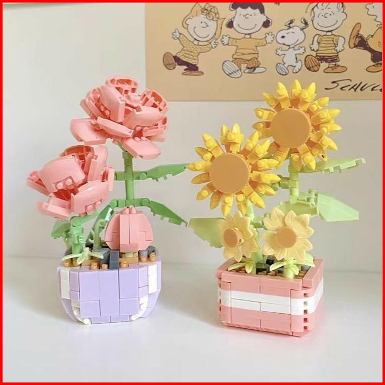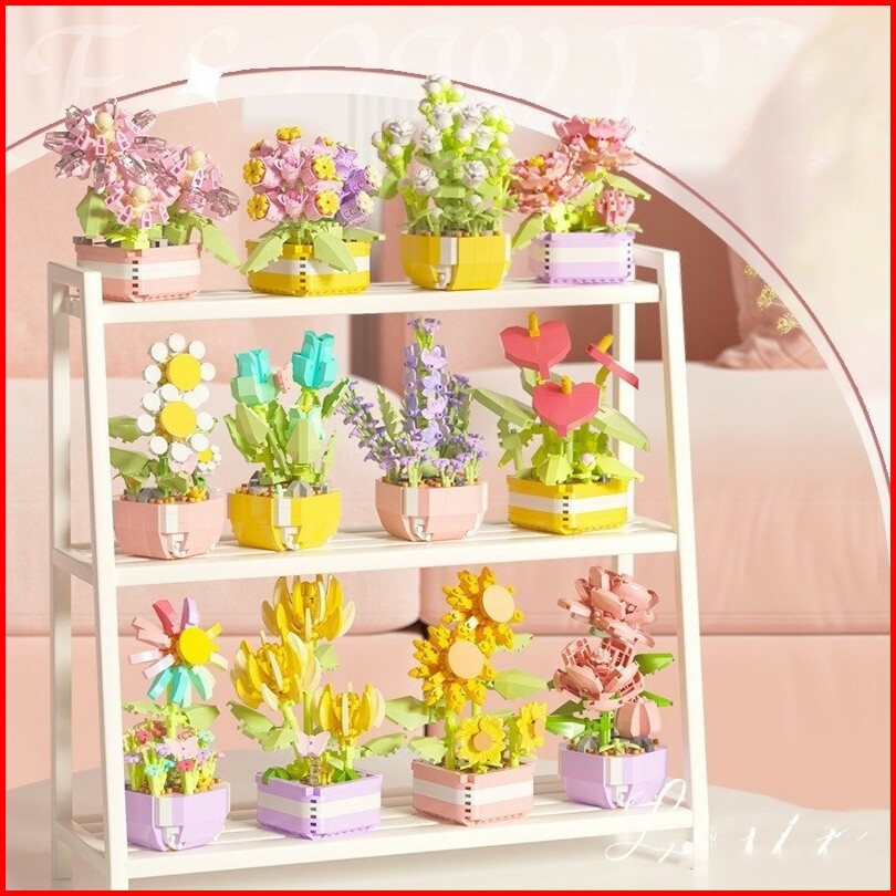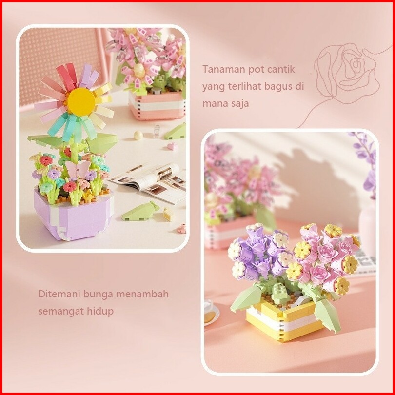 Senbao Pot Bunga Mainan Balok Susun Diy Hadiah Ulang Tahun Puzzle Blok Bricks Block Bangunan Mainan