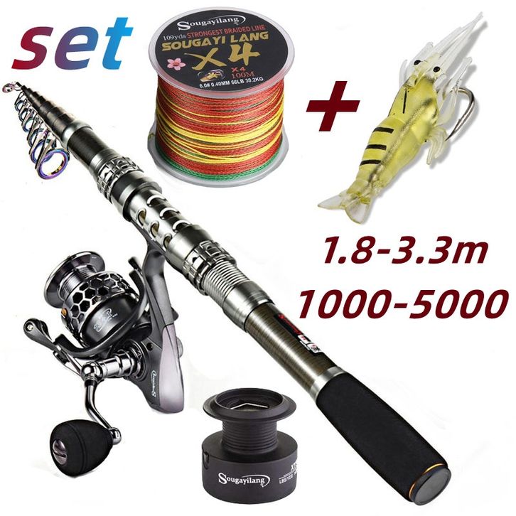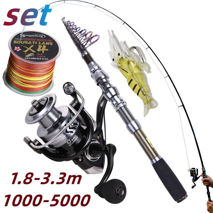 Sougayilang Set Joran Pancing Karbon 1.8-3.3M, Gulungan 1000-5000 5.5:1 Set Joran Pancing Lengkap/Tongkat Pancing Teles