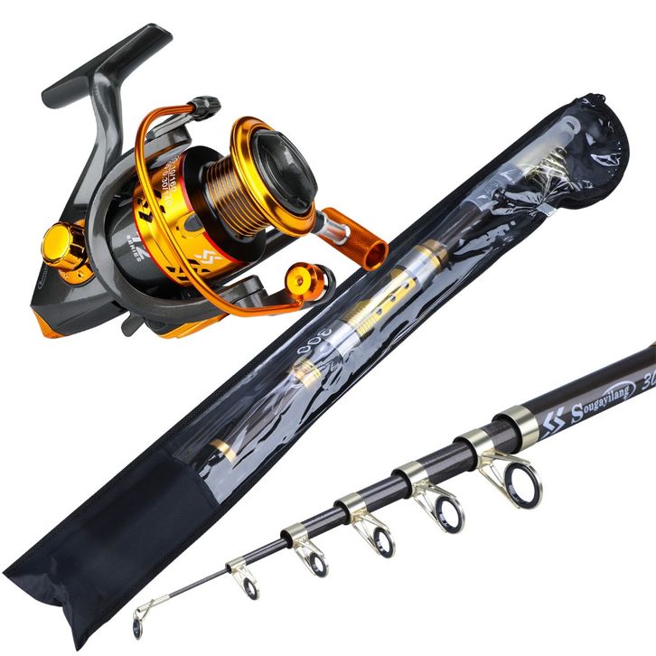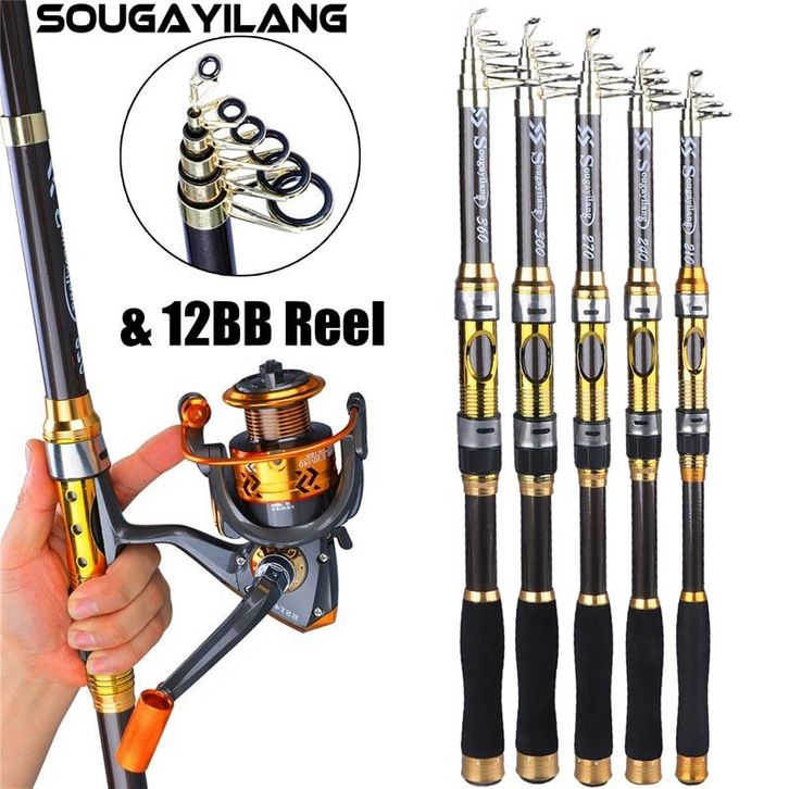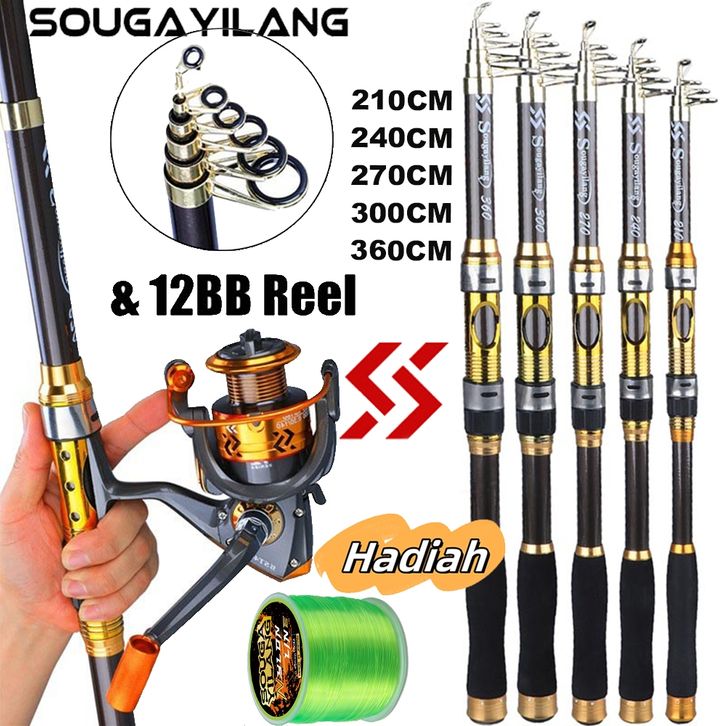 Sougayilang fishing rod set 2.1/2.4/2.7/3.0/3.6M telescopic rod 12BB 5.5:1 fishing reel complete set Joran Pangcing Set