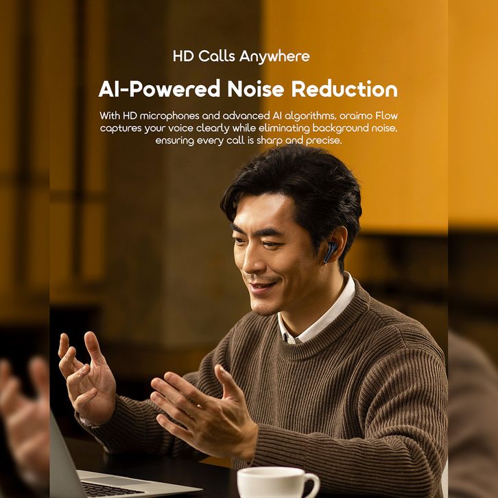 oraimo Flow OTW-3003 Stereo Nirkabel Sesungguhnya V5.3 ENC IPX4 Headset Super Bass Headphone Earphone Hitam Laptop TRUE
