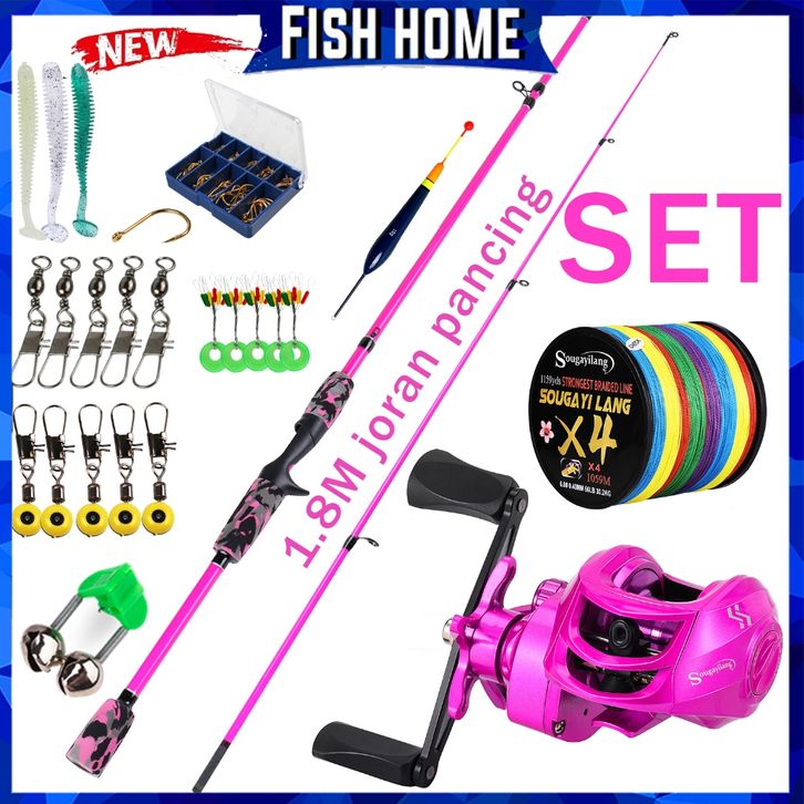 Sougayilang Joran pancing BC set 1.8M pancing rod EVA handle 7.2:1 gear ratio 18+1 BB bearings Paket combo terbaru, mur