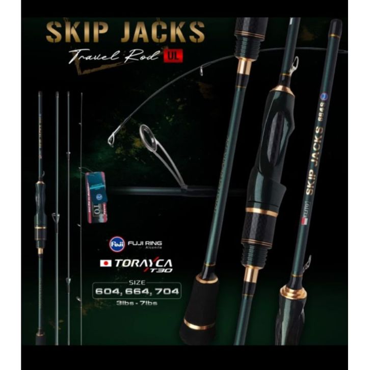 joran elito travel rod skip jacks spining ring fuji blank torayca t30 3-7lb sb4 604s/664s/704s