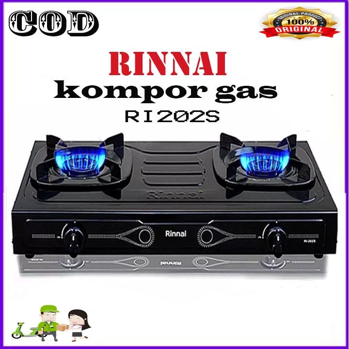 Kompor Gas RINNAI RI-202S Kompor Gas 2 Tungku Teflon ORI