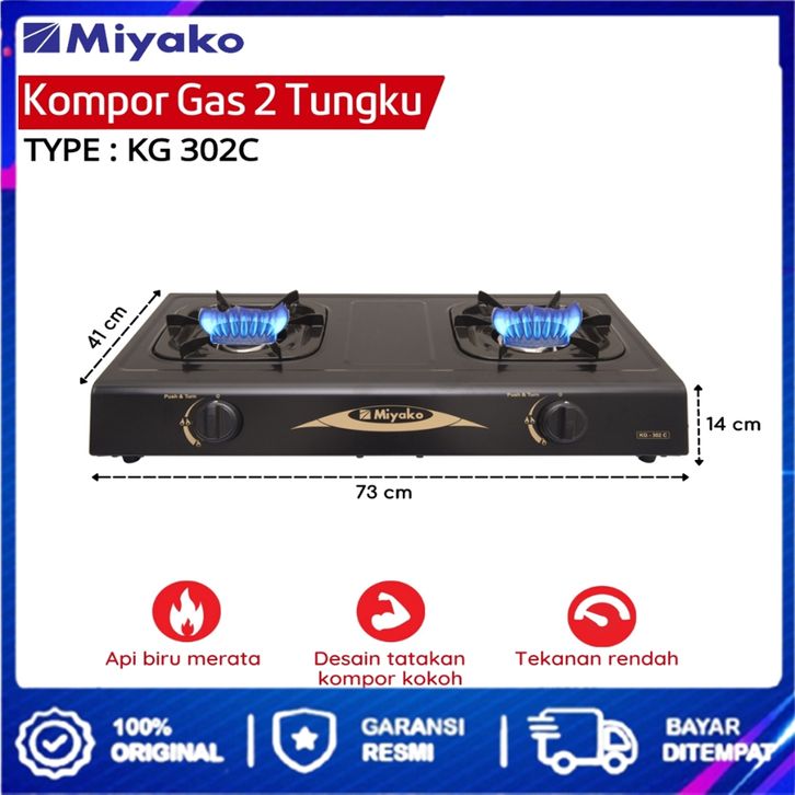 Miyako Kompor Gas 2 Tungku KG-302C BURNER KUNINGAN + SELANG REGULATOR SNI