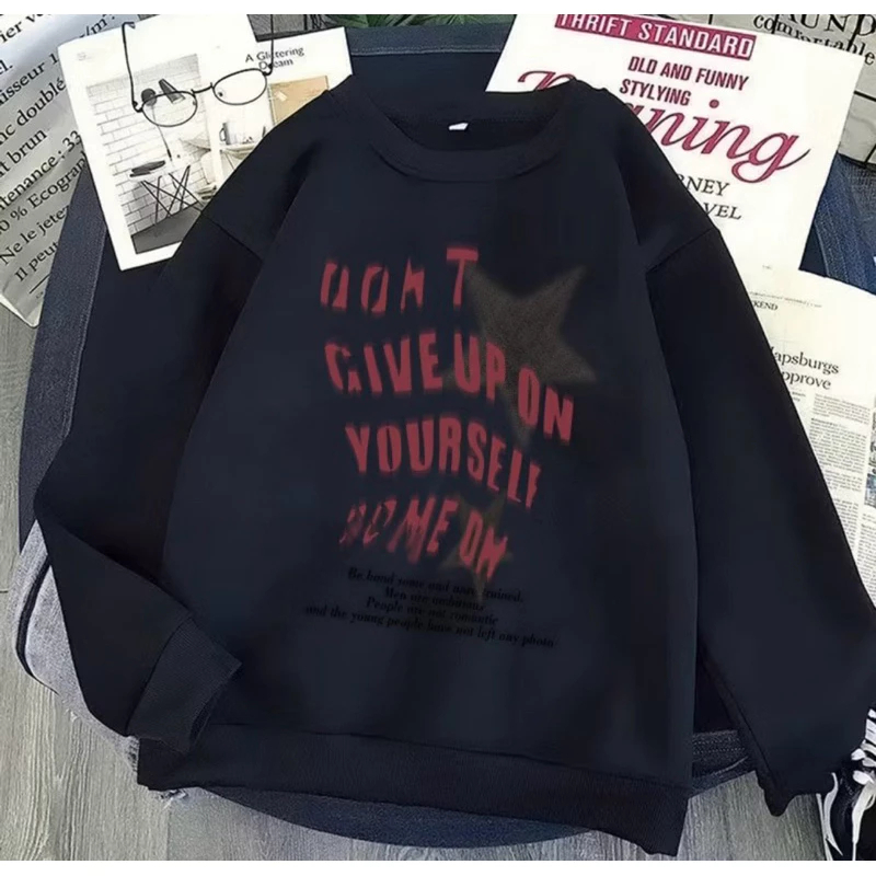 Sweater Cewek Motif Dont Give Up Sweater Oblong Crewneck Oversize Wanita Lengan Panjang Series Premikum Terlaris Murah