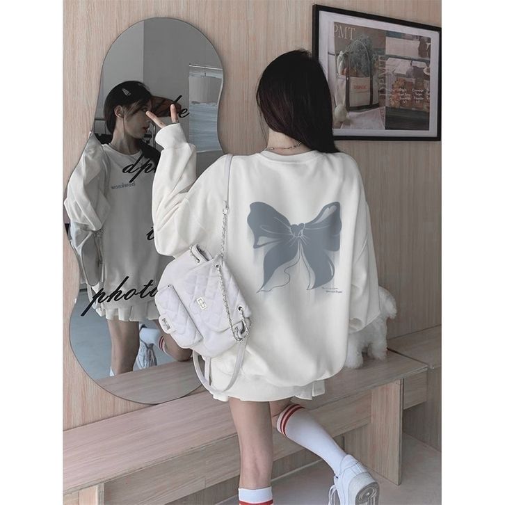 Sweater Cewek Oversize Lengan Panjang Model Versi Korea Dasi Kupu-kupu Aesthetic Korean Style Kekinian Terbaru Terlaris