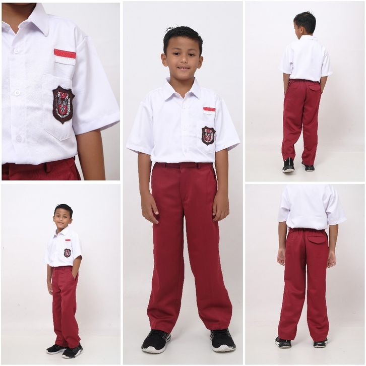 DISKON CELANA KEMEJA SERAGAM SEKOLAH SD MADRASAH MODEL PINGGANG KARET MERAH BAHAN PREMIUM TEBEL