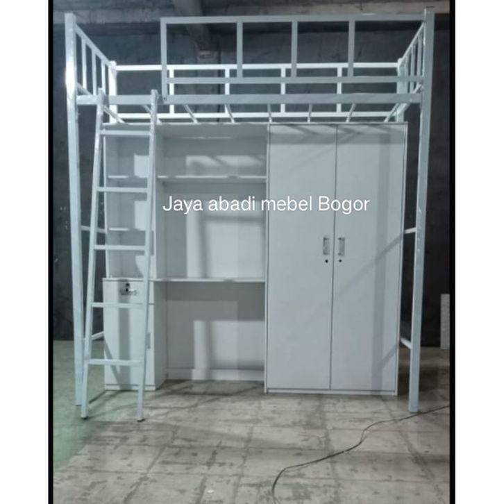 Ranjang tingkat besi set lemari+meja belajar 90x200,120x200,160x200 khusus Jabodetabek