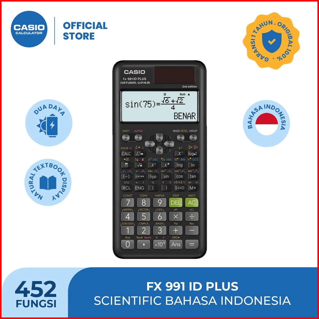 Casio Kalkulator Fx-991idplus -2nd Edition- B.indonesia - Kalkulator Sekolah Kuliah - Scientific - 451fungsi