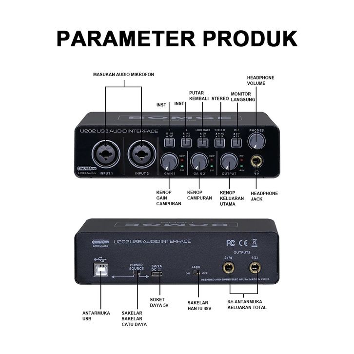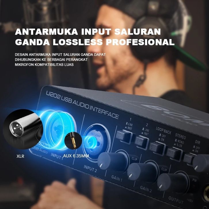 BOMGE U202 USB Audio Interface with Mic Preamplifier XLR/TSR/TS Ports,48V,32-Bit/192kHz Resolution for computer recordin