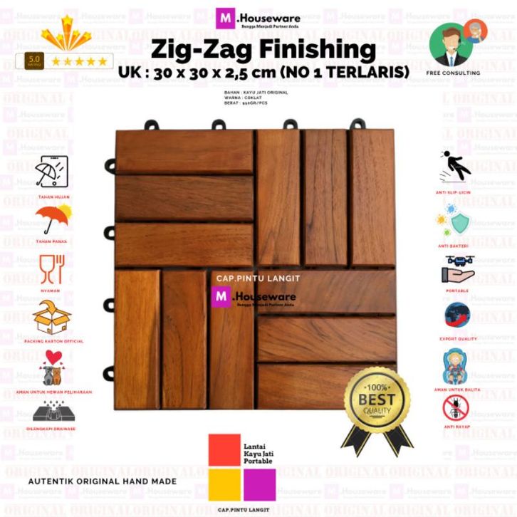 LANTAI KAYU JATI MOTIF ZIGZAG UK 30X30CM DECKING TILE PORTABLE KAYU JATI KUALITAS TERBAIK
