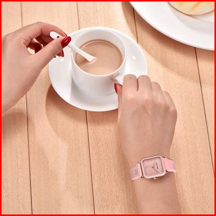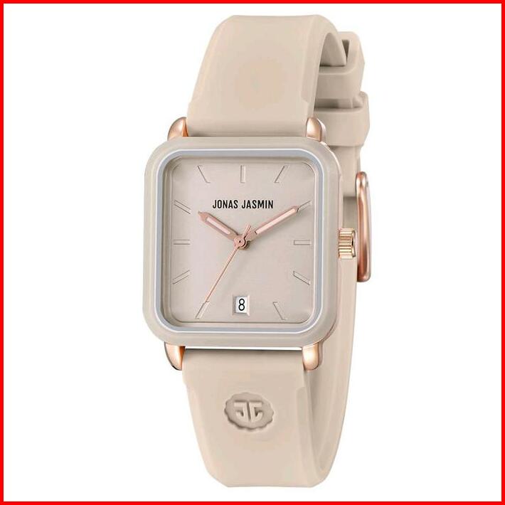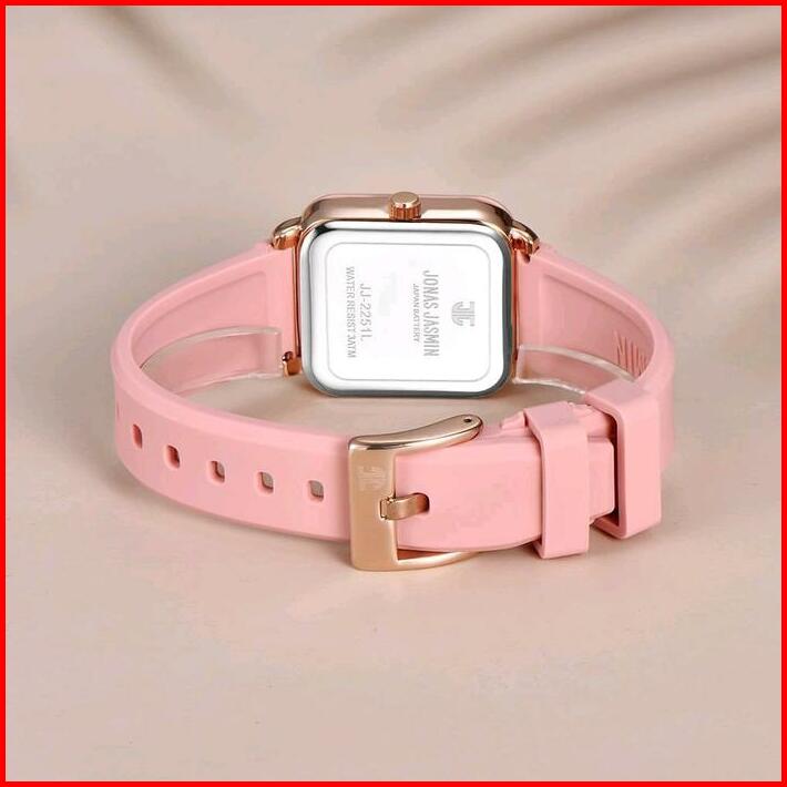Jonas Jasmin Original Kotak Pendek Polos New Hy-2251nr Jam Tangan Fashion Wanita Strap Rubber Fitur Tanggal Aktif Diamet