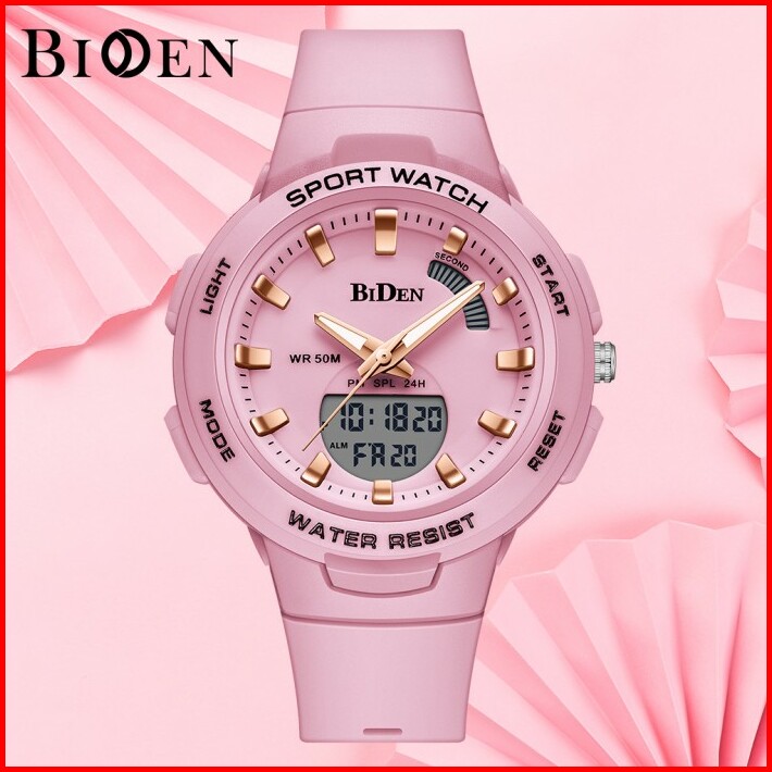 Biden Jam Tangan Wanita Digital Analog Display Olahraga Silikon Jam