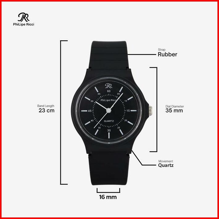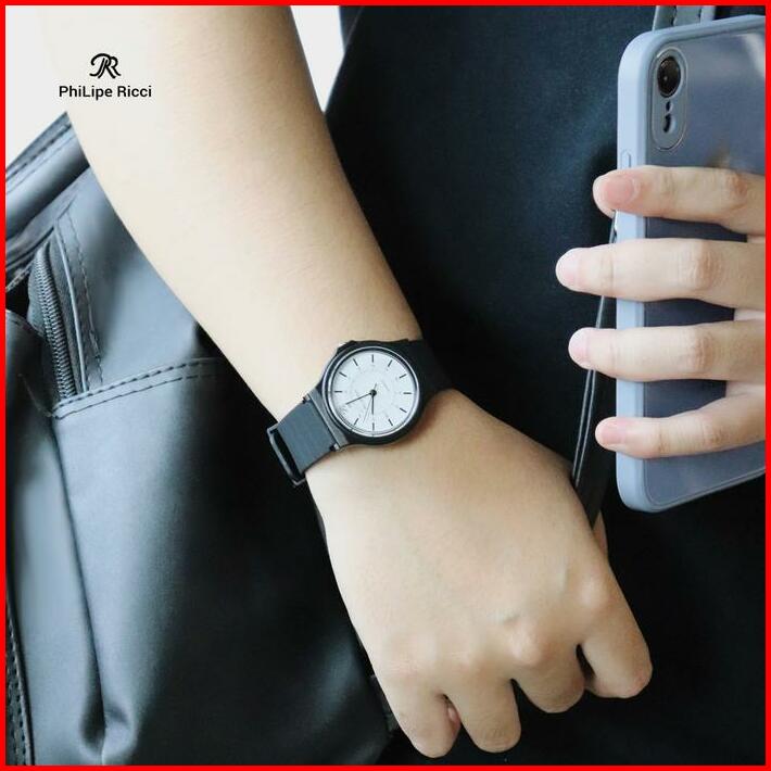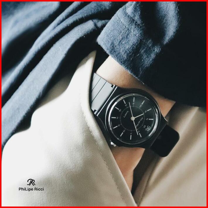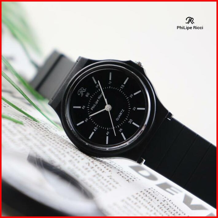 Philipe Ricci Jam Tangan Wanita Kecil Hitam Unisex Analog Tahan Air 6221g Water Resist 3atm Watch Free Box Cewek Karet P