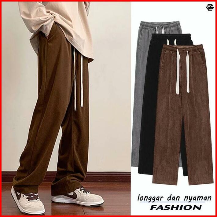 Celana Corduroy Longgar Pria Dan Wanita