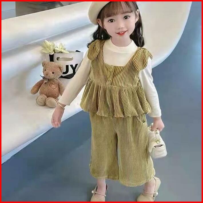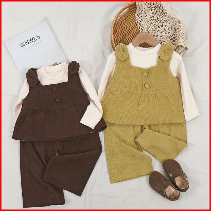 Angenius Setelan Lengan Panjang Anak Perempuan Casual Ala Korea Kekinian Motif Polos Bahan Katun Dan Baby Corduroy Umur