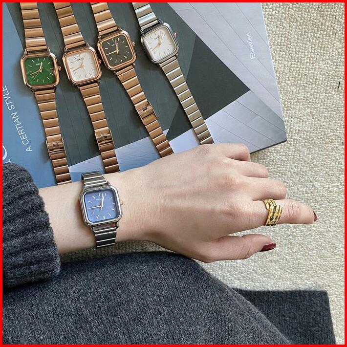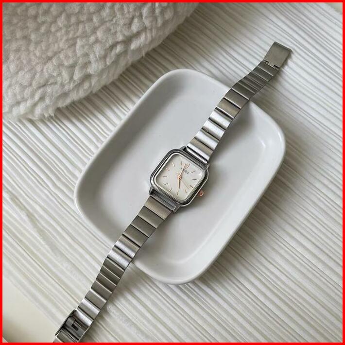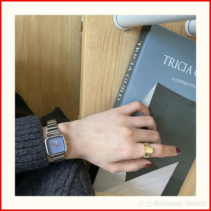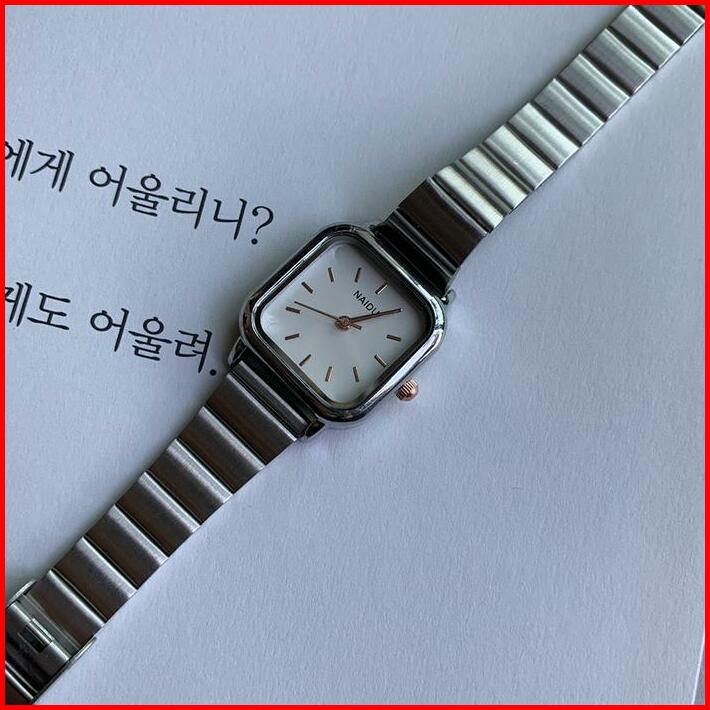 Kooley Jam Tangan Naidu Analog Wanita Stainless Steel Fashion Korea Square Belt Silver Watches