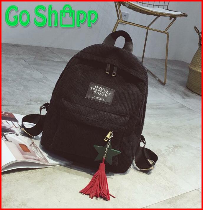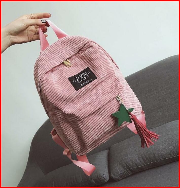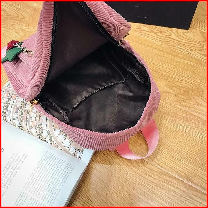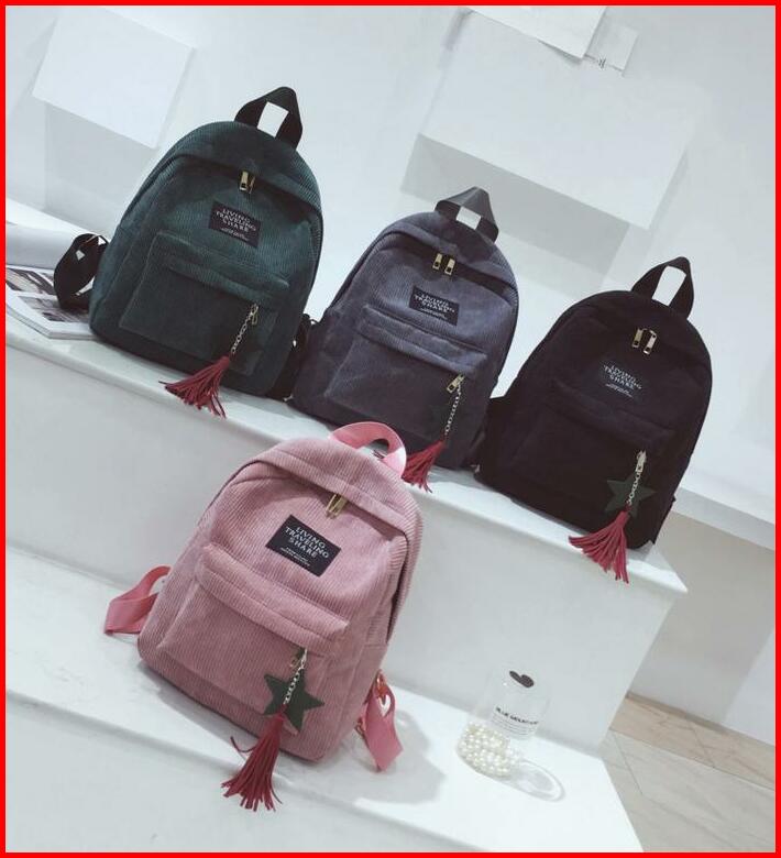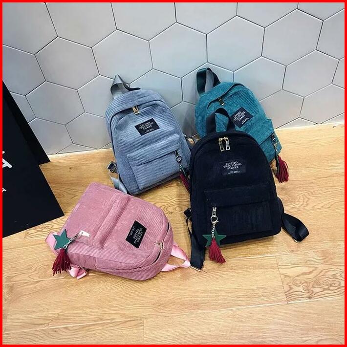Tas Ransel Sekolah Backpack Wanita Viral Bahan Corduroy Fashion Korea Style Aesthetic Terbaru Kekinian Bk06