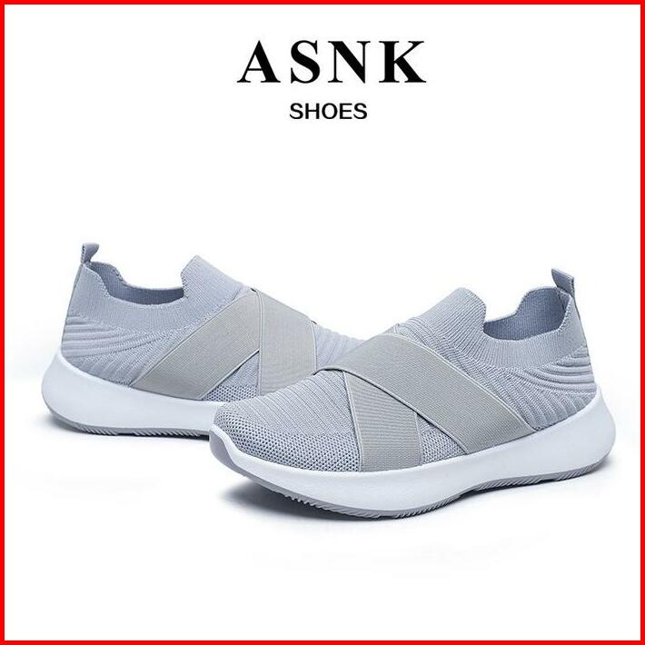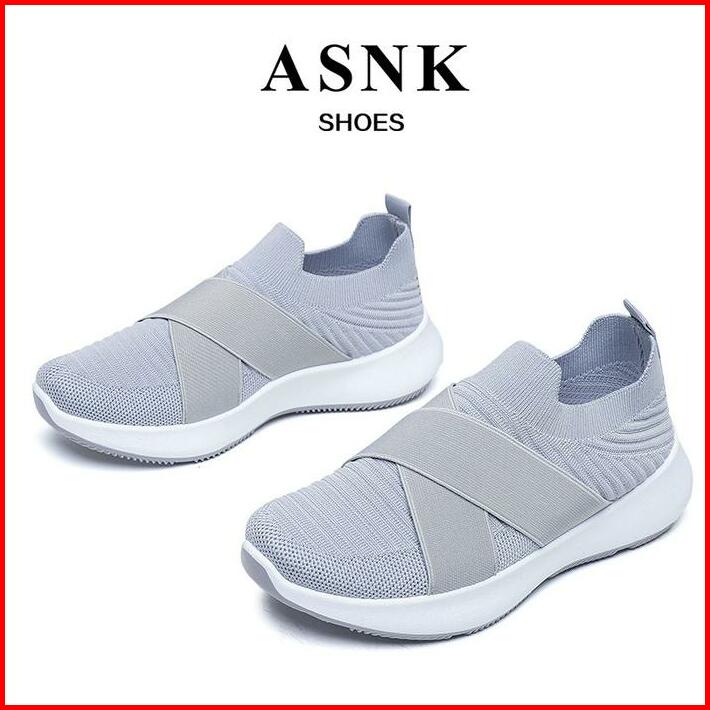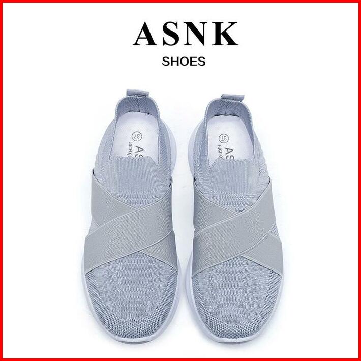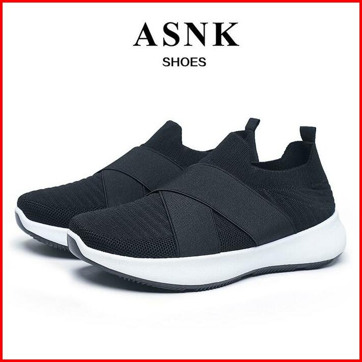 Asnk.seven Day Sepatu Rajut Slip On Wanita Olahraga Tanpa Tali Sport Shoes A-6617 Hitamfull Sneakers