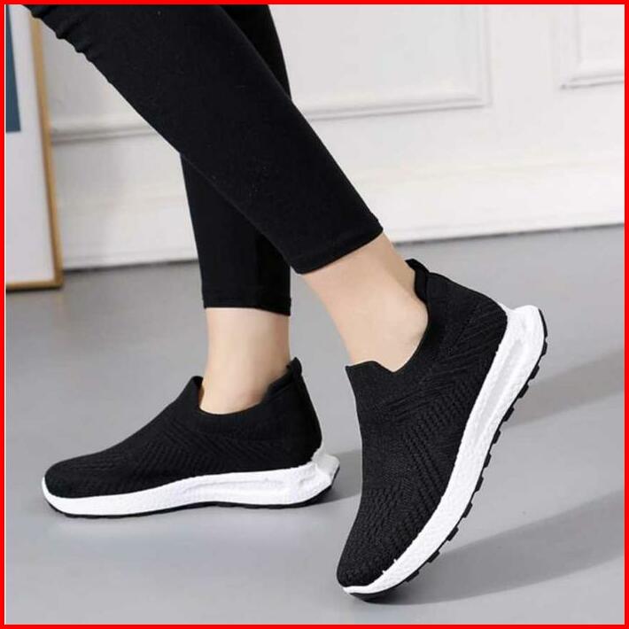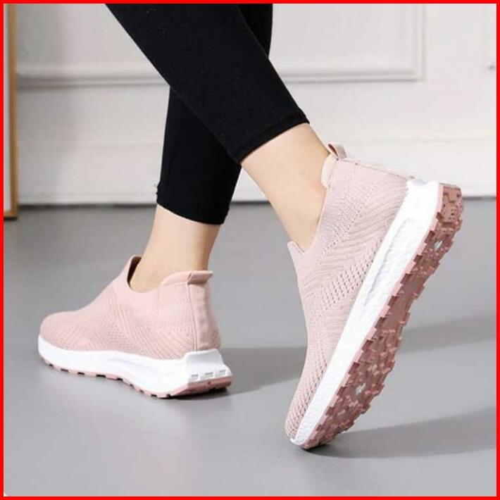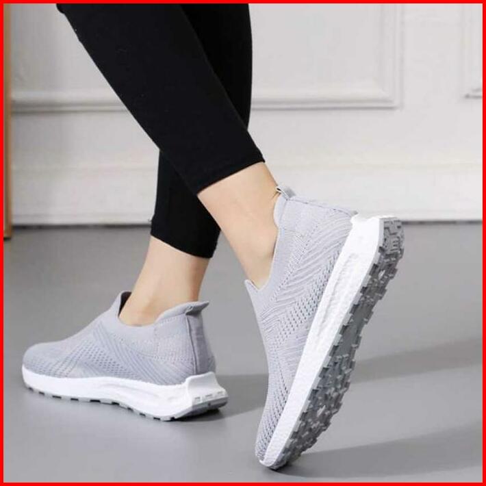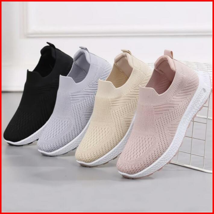 Nw049 Sepatu Wanita Olahraga Rajut Model Slip On