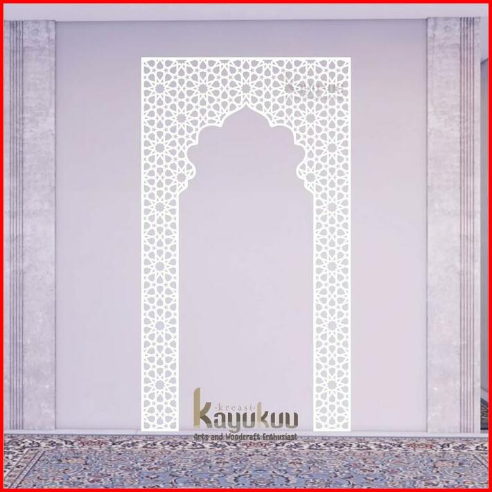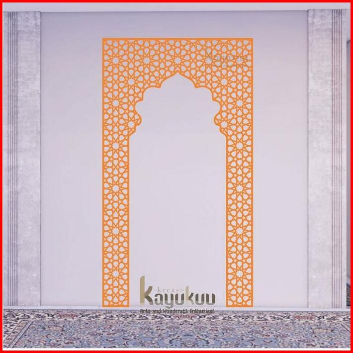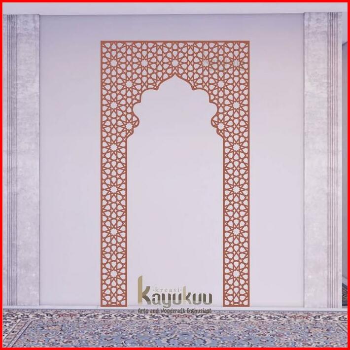 Kreasikayukuu Walldecor Hiasan Dinding Mihrab Mushola Bahan Cutting Plywood 3mm Mihrabmusholaminimalis Warna Coklat Dan