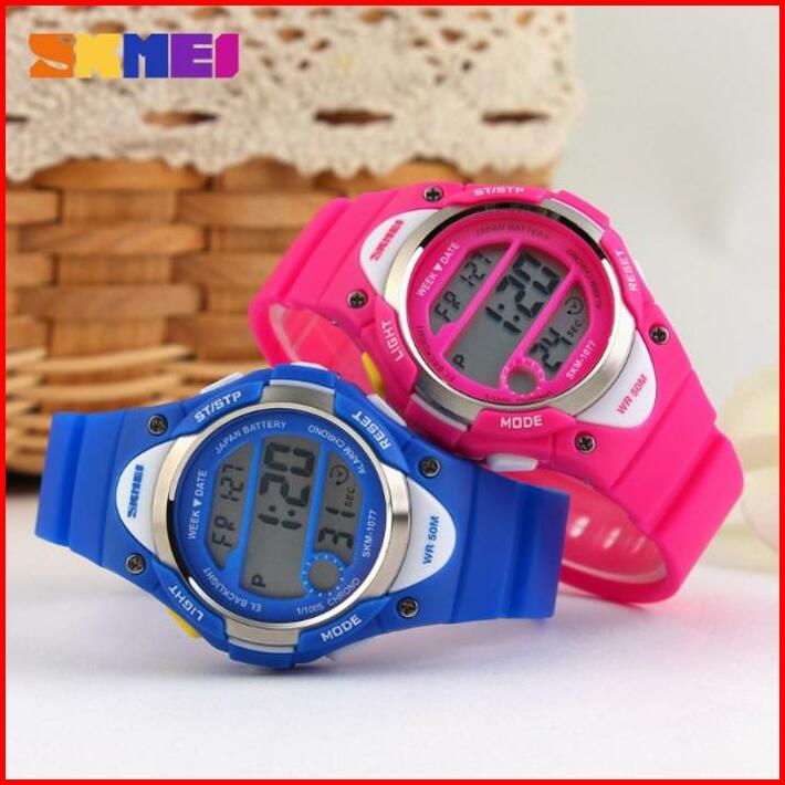 Jam Tangan Anak Wanita Digital Skmei 1077 Blue Water Resistant 50m