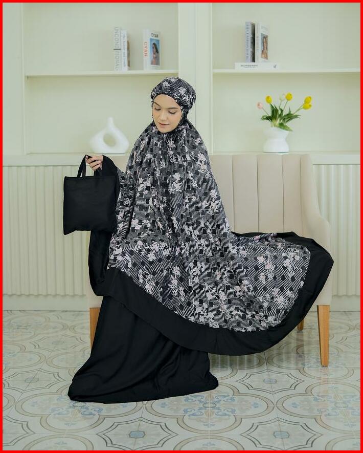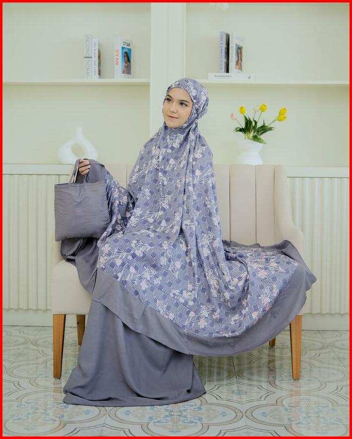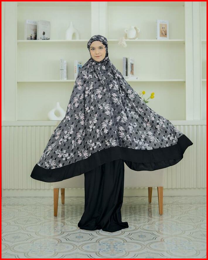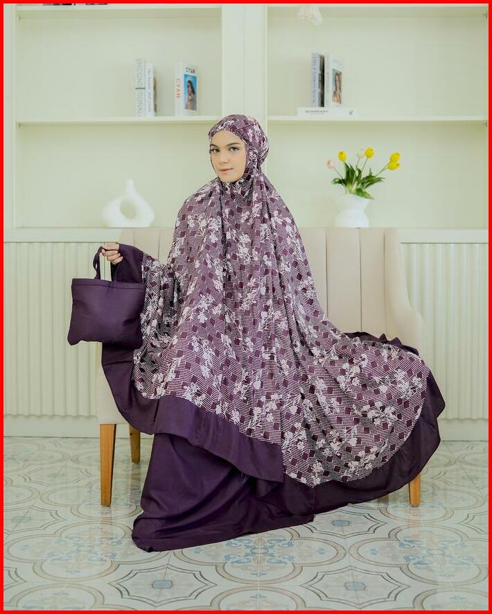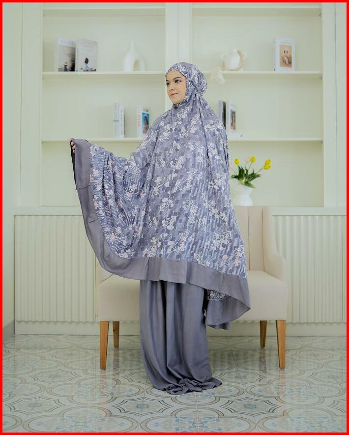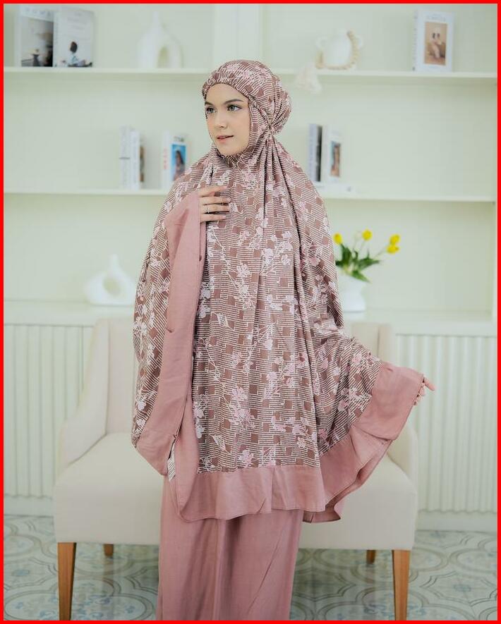 Mukena Dewasa Atasan Bawahan Motif Bunga Sakura Size Jumbo Katun Rayon Bali Halya Shop