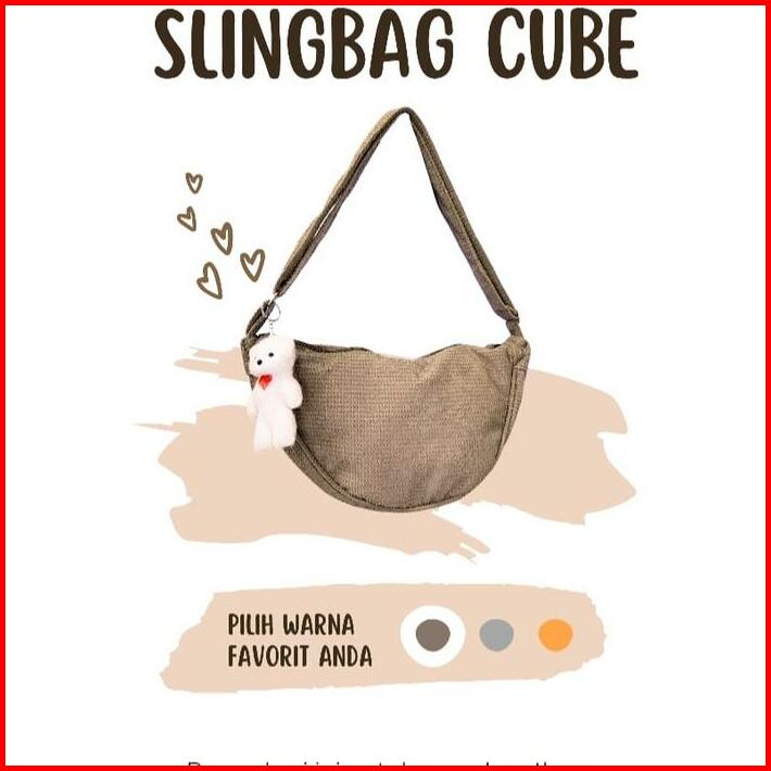 Ifti Slingbag Cube Free Boneka Tas Selempang Wanita Terbaru Slingbag Kasual Korduroy Corduroy