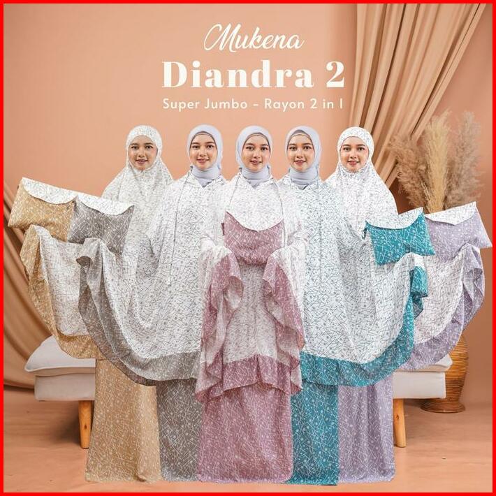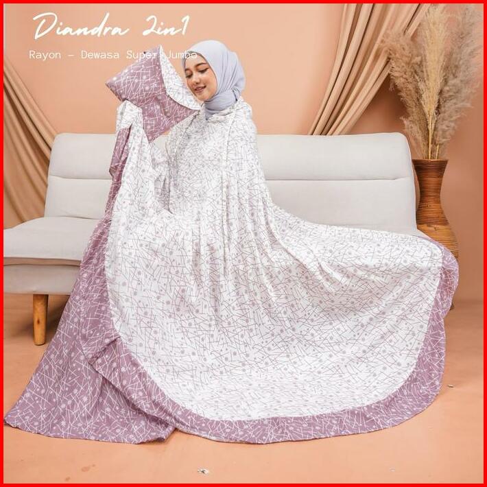 Mukena Dewasa 2in1 Traveling Super Jumbo Rayon Bali Premium Diandra Rempel Atasan Bawahan Katun Panjang