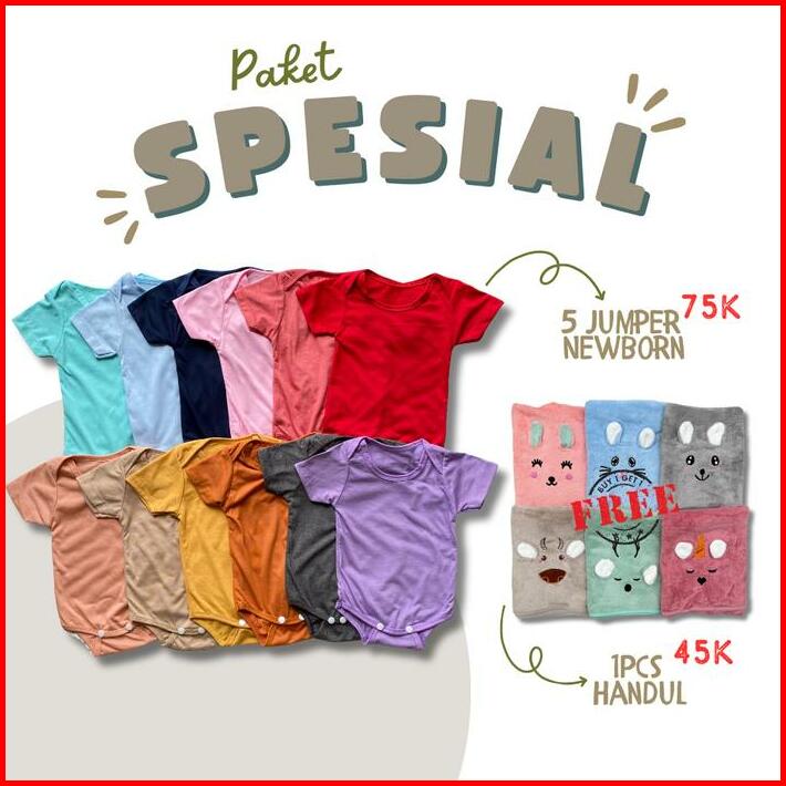 Paket Spesial 5 Jumper Polos Bayi Newborn Free Handuk Mikrofiber 100x50cm Katun