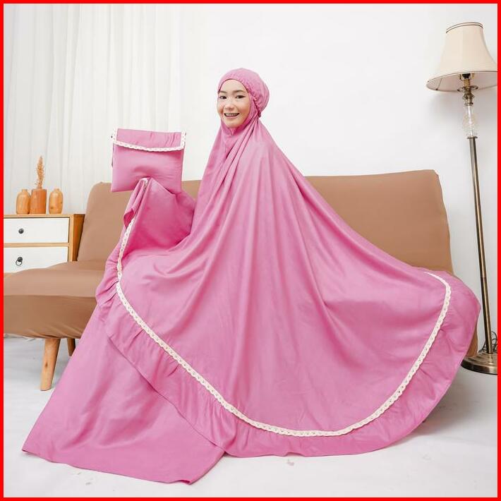 Mukena Polos Renda Ruwaida Rayon Bali Dewasa Jumbo Muslim Mukenah Cantik Mewah Wanita
