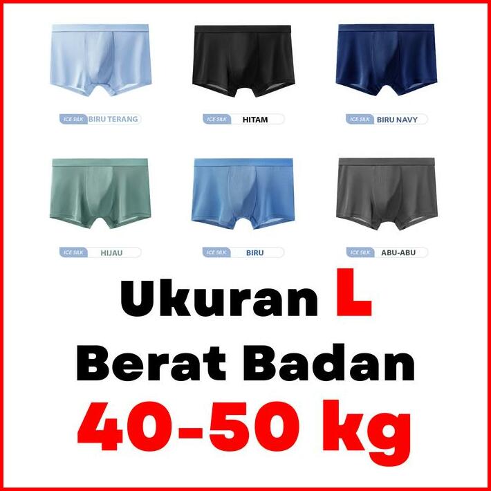 Paket 6 Pcs Celana Dalam Pria Boxer Ice Silk Yang Lagi Viral Hitam Spandex Nyaman Lembut