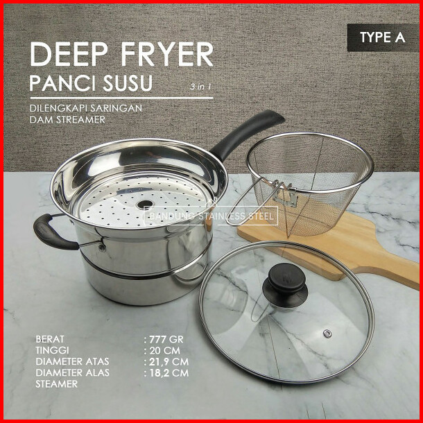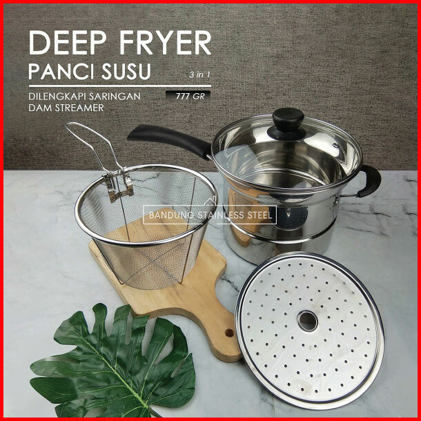 Panci Susu Deep Fryer Goreng Kukus Masak Steamer Saringan Multifungsi