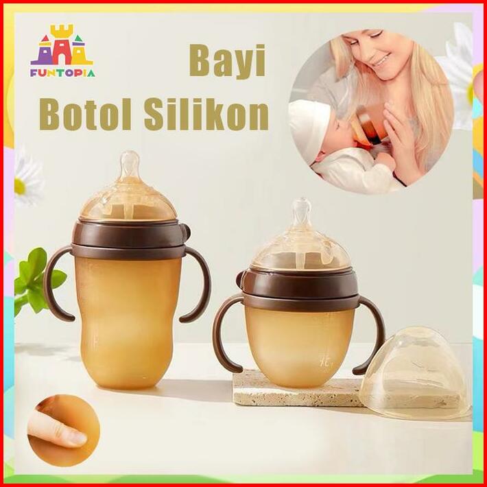 Funtopia Botol Susu Bayi Dengan Sedotan Yang Dilengkapi Dengan Silikon Nano Dan Leher Botol Yang Lebar Serta Pegangan Me