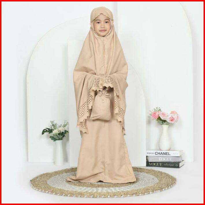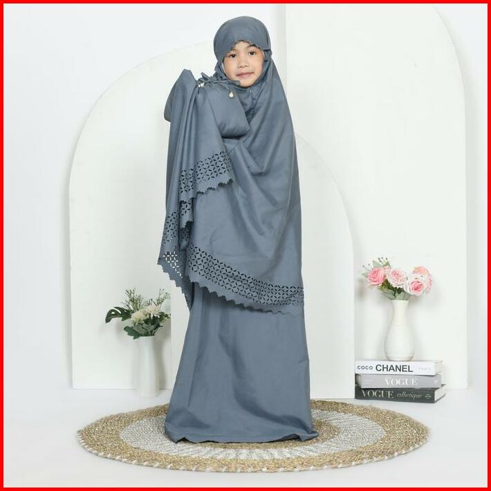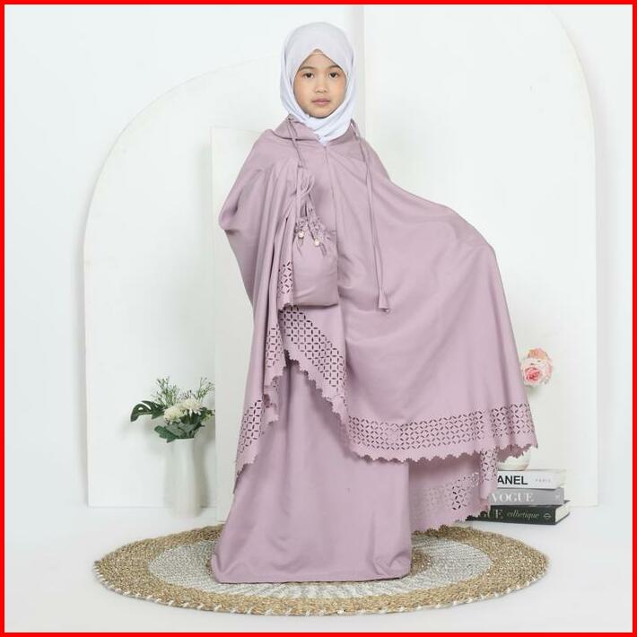 Mukena Anak Perempuan 6-10 Tahun Resleting 2in1 Katun Premium Lasercut Mewah Ayra Series Nyaman Lembut Muslim