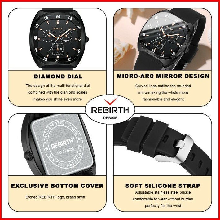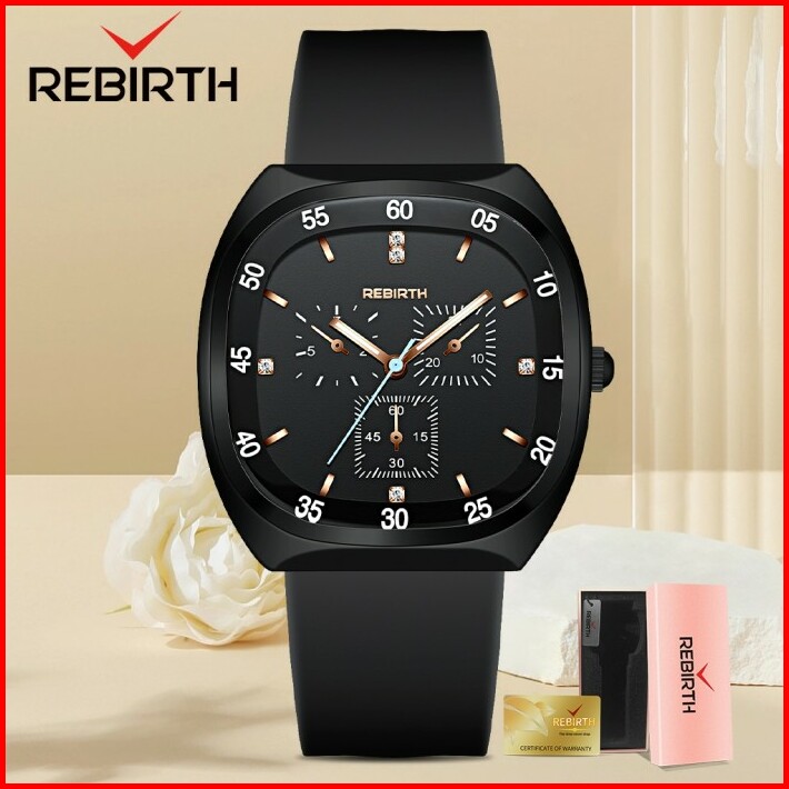 Rebirth Jam Tangan Wanita Mode Tali Silikon Anti Air Kuarsa Jam Tangan