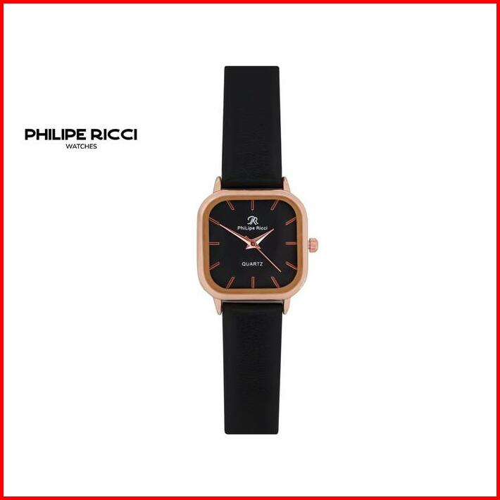 Philipe Ricci Jam Tangan Wanita Kulit Kecil Aesthetic Kotak Original 7487 Jam Cewek Mini Rose Hitam