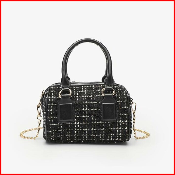 Zrbr Tas Selempang Wanita Bowling Rajut Shoulder Handbag Tas Rantai- Tweed Jeanne Slingbag 9036