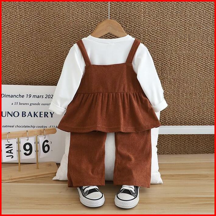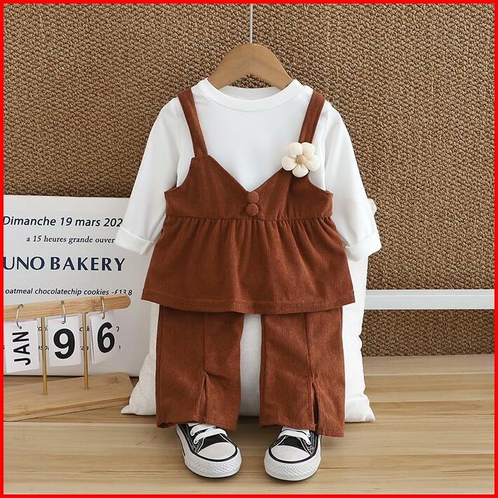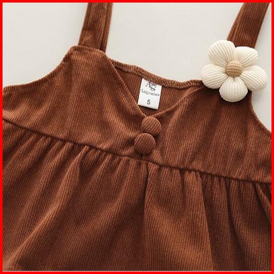 Angenius Setelan Anak Perempuan Lengan Panjang Motif Polos Bros Bunga Dengan Bahan Katun Corduroy Premium Casual Lucu Un