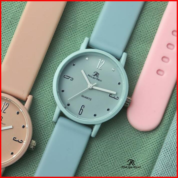 Philipe Ricci Jam Tangan Wanita Analog Karet Dial Bulat Diameter Mini Ukuran Kecil Ruber 8665 Free Box