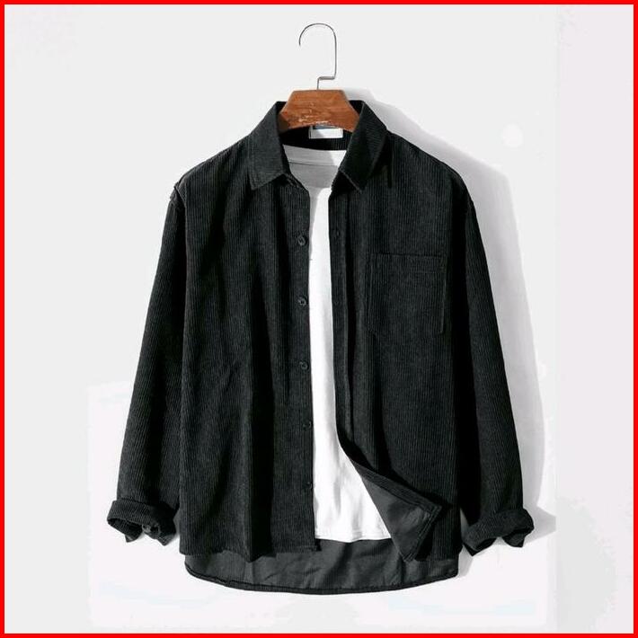 Kemeja Corduroy Pria Lengan Panjang Reguler Fit Warna Sage Kemeja Kerja Dan Karntor Basic Hitam Kemeja Cowok Keren Kerja