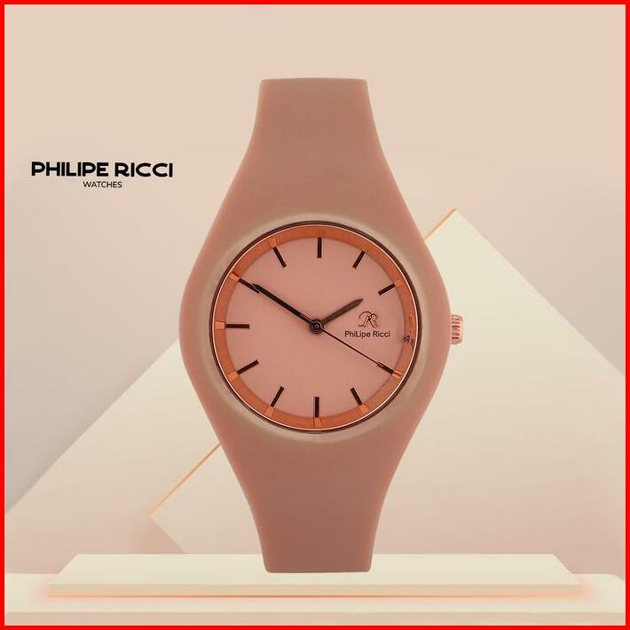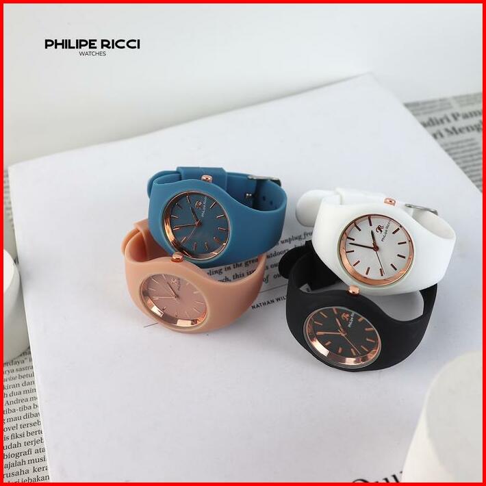Philipe Ricci Jam Tangan Wanita Kecil Original Cewek Analog Strap Karet Tali Rubber Diameter Bulat Model Simpel Kekinian