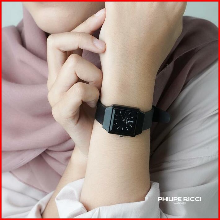 Philipe Ricci Jam Tangan Wanita Analog Karet Terbaru 6833w Free Box Cewek Hitam Perempuan Watches